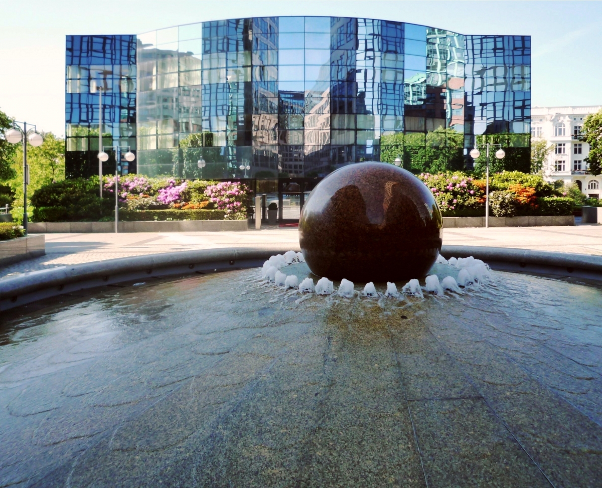 W architekturze otoczenia budynków bardzo ważną rolę odgrywa kamień naturalny, zieleń i woda. Trzy fontanny, 50 ławek, 1.300 metrów polerowanych murków, cięta i piaskowana kostka brukowa oraz 250 metrów stopni blokowych, a wszystko z granitu strzegomskiego, to najkrótsze podsumowanie budowy realizowanej w latach 1994-1995.