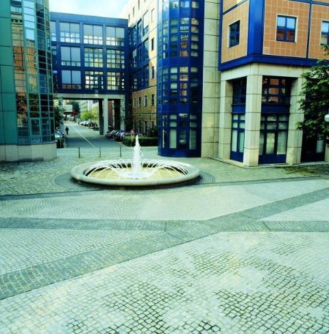 Nach dem Umzugsbeschluß des Deutschen Bundestages erwachte das Büro- und Verwaltungszentrum Sprebogen zum Leben. Gegenwärtig hat hier das Bundesministerium für Verkehr, Bau und Stadtentwicklung seinen Sitz. In die Außenarchitektur des Viertels wurden gezielt Natursteine, Grünflächen und - spielerisch - Wasserelemente eingefügt, denn die Natur gehört heute mehr denn je zum Bild der modernen Stadt.